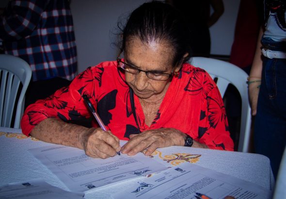 En un acto oficial, la gerente del Instituto de Vivienda Municipal de Aguazul (IVIMA), Johana Peña, junto...
